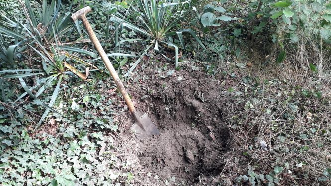 Sie wird verbuddelt. Genaugenommen nur eine ausgediente Waschmaschinentrommel. Aber die haben wir im Tifu-Garten unter der großen Fichte vergraben. Warum das jetzt? Sie wird zum Kühlschrank umfuntioniert. Wie jetzt?